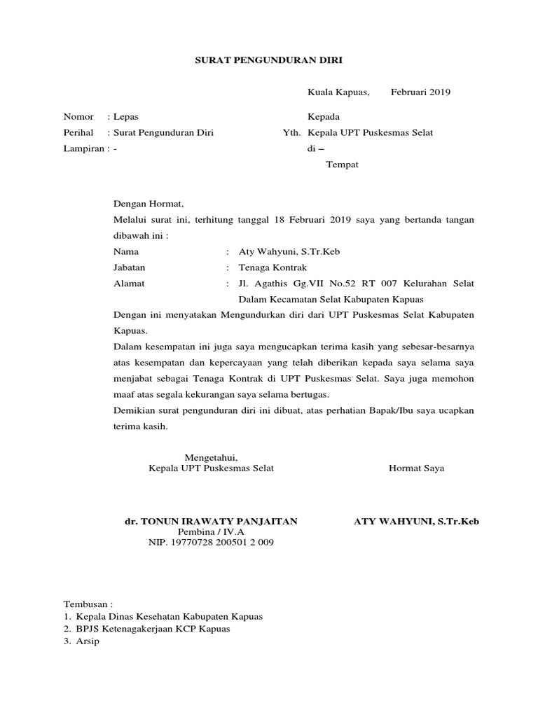 Surat Pengunduran Diri Di Puskesmas - Surat Pengunduran Diri Dari Jabatan Docx - Ada sangat banyak jenis pengunduran diri ataupun contoh surat resign di bidang pekerjaan, kampus, organisasi.. Berikut beberapa contoh surat pengunduran diri atau surat resign dengan penulisan yang benar dan sopan, dilengkapi dengan trik dan tips pembuatannya. Surat pengunduran diri merupakan sebuah surat yang dibuat dimana di dalam surat tersebut berisi informasi bahwa anda ingin resign atau mengundurkan diri surat pengunduran diri. Surat ini perlu dibuat karena sudah berdasarkan aturan yang memang berlaku di perusahaan serta berguna untuk saling menjaga. Pengertian surat pengunduran diri adalah surat yang dibuat untuk menyatakan pengunduran diri dari pekerjaan, sekolah, kampus, organisasi, ataupun jabatan tertentu. Ada sangat banyak jenis pengunduran diri ataupun contoh surat resign di bidang pekerjaan, kampus, organisasi.